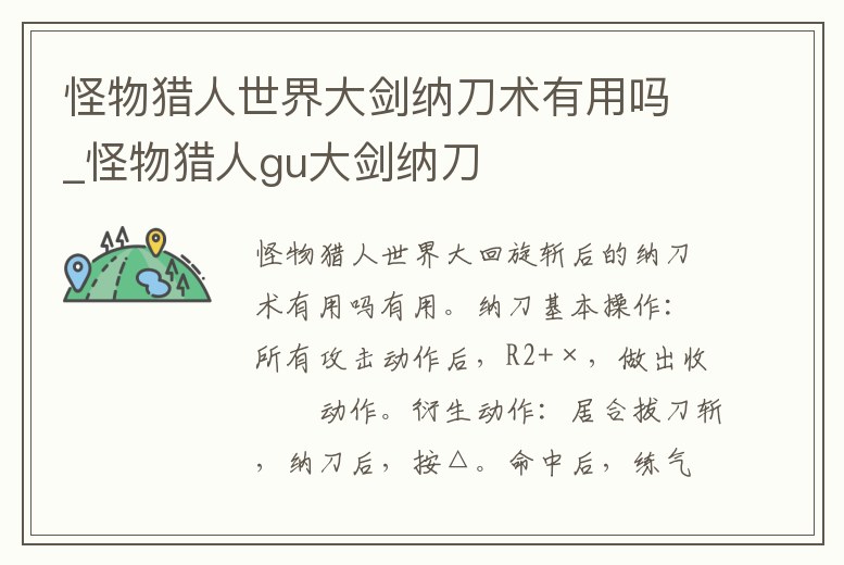 怪物獵人世界大劍納刀術有用嗎_怪物獵人gu大劍納刀