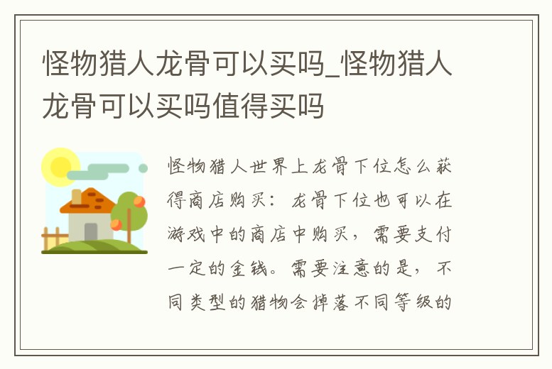 怪物獵人龍骨可以買嗎_怪物獵人龍骨可以買嗎值得買嗎
