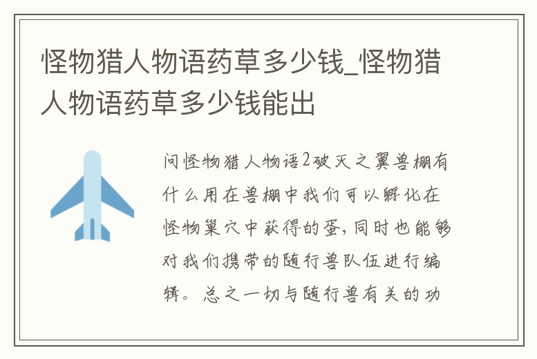 怪物獵人物語藥草多少錢_怪物獵人物語藥草多少錢能出