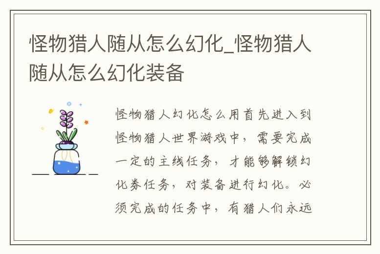 - 怪物獵人隨從怎么幻化_怪物獵人隨從怎么幻化裝備