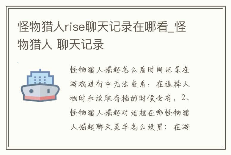 怪物獵人rise聊天記錄在哪看_怪物獵人 聊天記錄