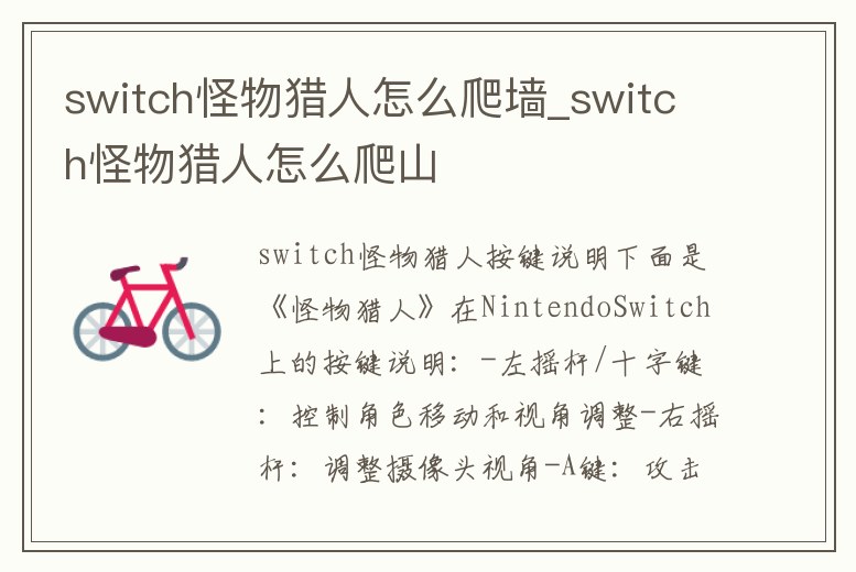 switch怪物獵人怎么爬墻_switch怪物獵人怎么爬山