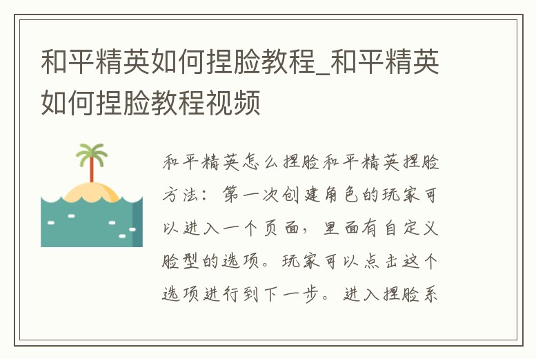 和平精英如何捏臉教程_和平精英如何捏臉教程視頻