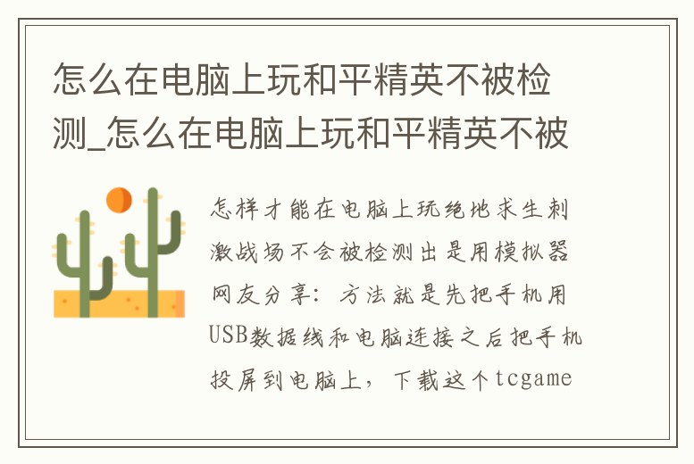 - 怎么在電腦上玩和平精英不被檢測_怎么在電腦上玩和平精英不被檢測出來