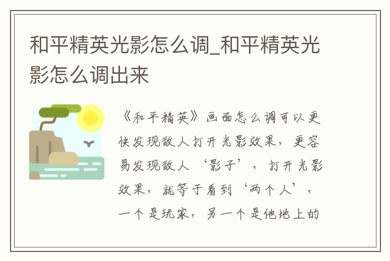 打開光影效果,更容易發現敵人 ‘影子’,打開光影效果,就等于看到‘兩個人’,一個是玩家,另一個是他地上的影子。因此,更容易發現敵人。幀數調節到最高 幀數的作用:使動作更流暢。簡單來說,《和平精英》是射。