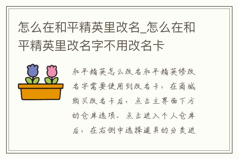 - 怎么在和平精英里改名_怎么在和平精英里改名字不用改名卡