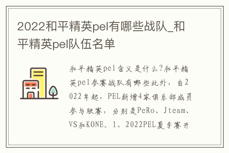 - 2022和平精英pel有哪些戰(zhàn)隊(duì)_和平精英pel隊(duì)伍名單