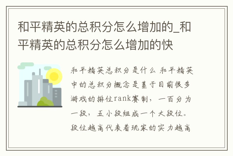 和平精英的總積分怎么增加的_和平精英的總積分怎么增加的快