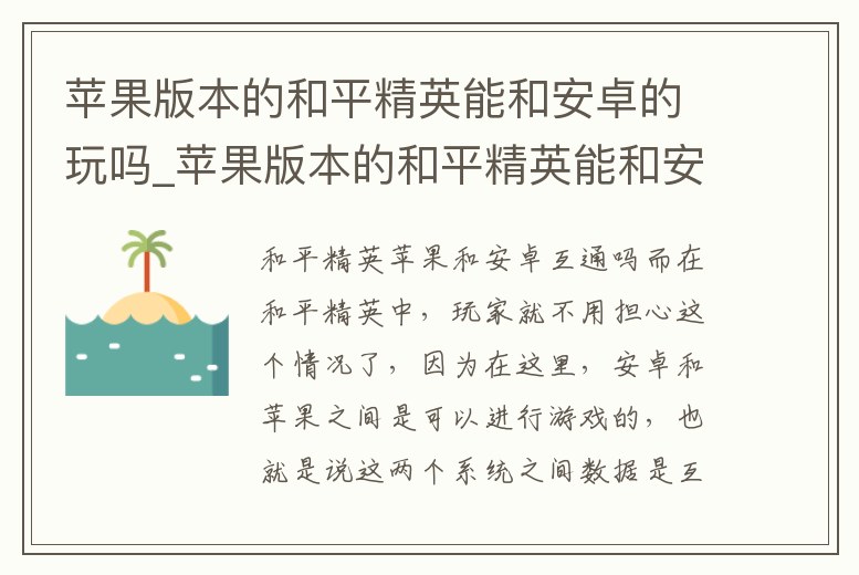 - 蘋果版本的和平精英能和安卓的玩嗎_蘋果版本的和平精英能和安卓的玩嗎知乎
