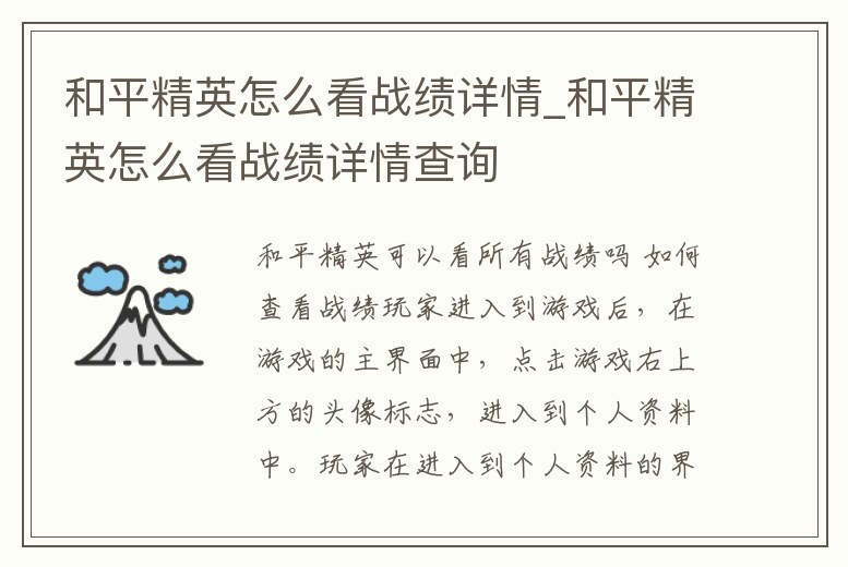 - 和平精英怎么看戰(zhàn)績詳情_和平精英怎么看戰(zhàn)績詳情查詢
