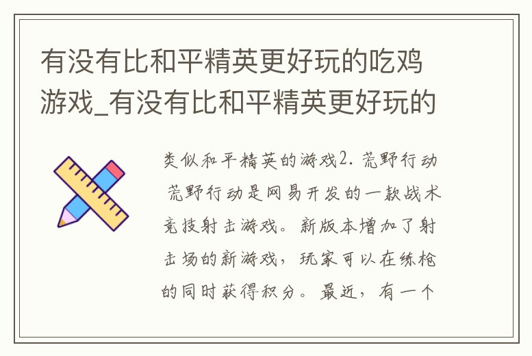 有沒有比和平精英更好玩的吃雞游戲_有沒有比和平精英更好玩的吃雞游戲