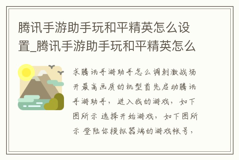 騰訊手游助手玩和平精英怎么設置_騰訊手游助手玩和平精英怎么設置更流暢