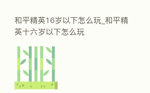- 和平精英16歲以下怎么玩_和平精英十六歲以下怎么玩