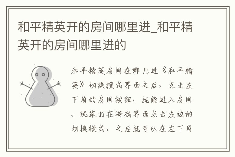 和平精英開的房間哪里進_和平精英開的房間哪里進的