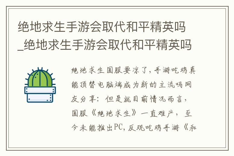- 絕地求生手游會取代和平精英嗎_絕地求生手游會取代和平精英嗎知乎