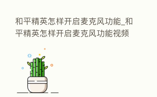 和平精英怎樣開啟麥克風功能_和平精英怎樣開啟麥克風功能視頻