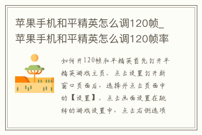 - 蘋果手機和平精英怎么調120幀_蘋果手機和平精英怎么調120幀率高