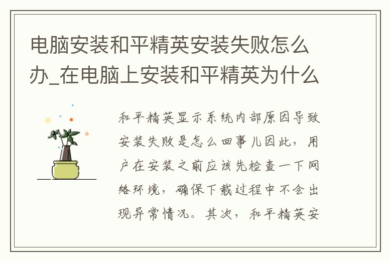 電腦安裝和平精英安裝失敗怎么辦_在電腦上安裝和平精英為什么安裝失敗