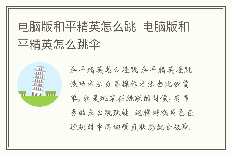 和平精英怎么連跳 和平精英連跳技巧方法分享