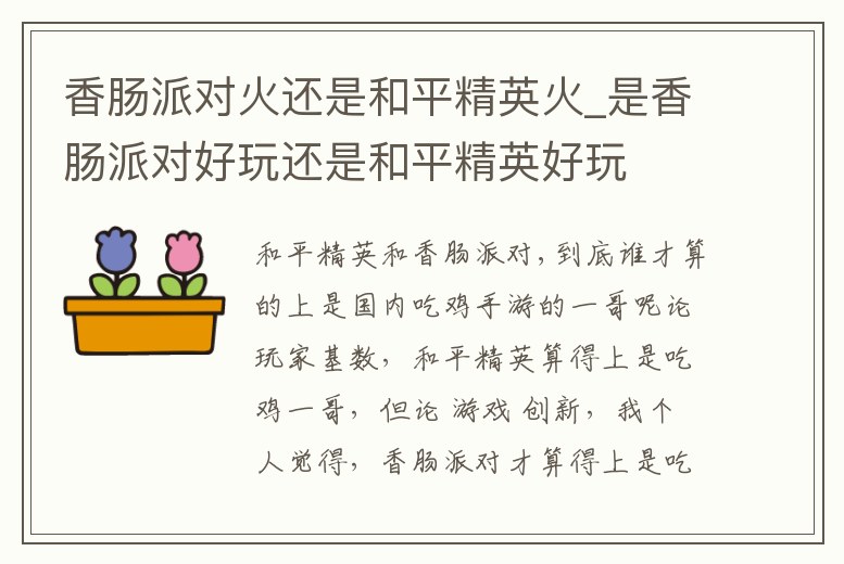 香腸派對火還是和平精英火_是香腸派對好玩還是和平精英好玩