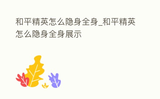 和平精英怎么隱身全身_和平精英怎么隱身全身展示
