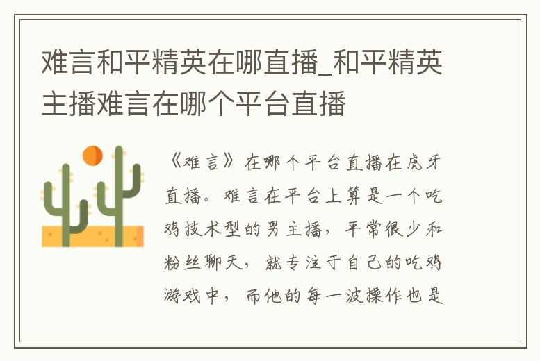 難言和平精英在哪直播_和平精英主播難言在哪個平臺直播
