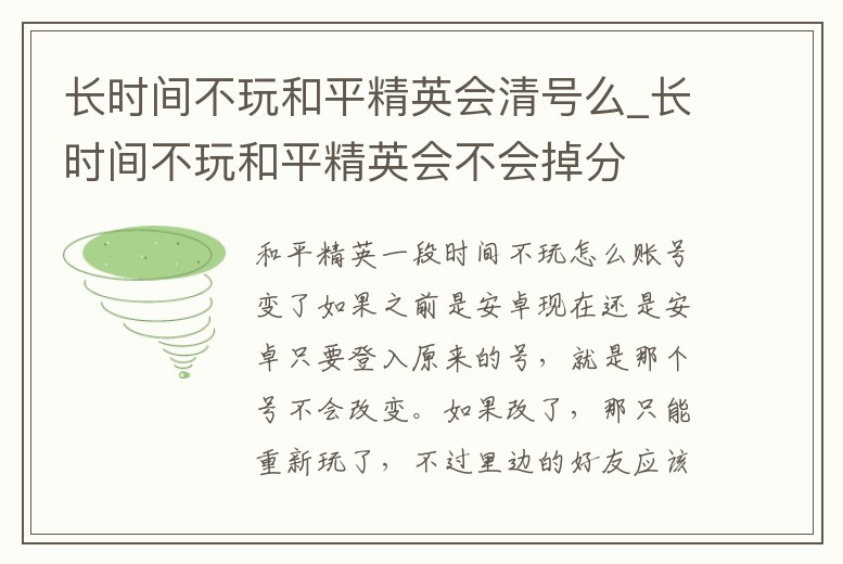 - 長時間不玩和平精英會清號么_長時間不玩和平精英會不會掉分