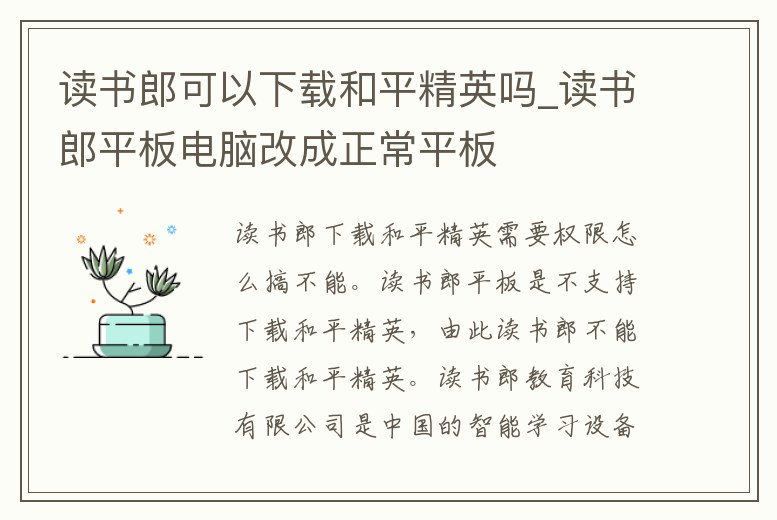- 讀書郎可以下載和平精英嗎_讀書郎平板電腦改成正常平板