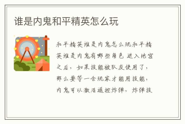 吃雞內鬼怎么玩特種兵:找出游戲中的兩個內鬼或者完成發布維修基地的全部任務獲勝。1.內鬼:內鬼獲勝的方式有四種。2.拖延戰術:拖延時間讓特種兵無法按時完成維修基地的任務;擊殺:內鬼使用平底鍋淘汰特種兵,全部淘汰即可獲勝;