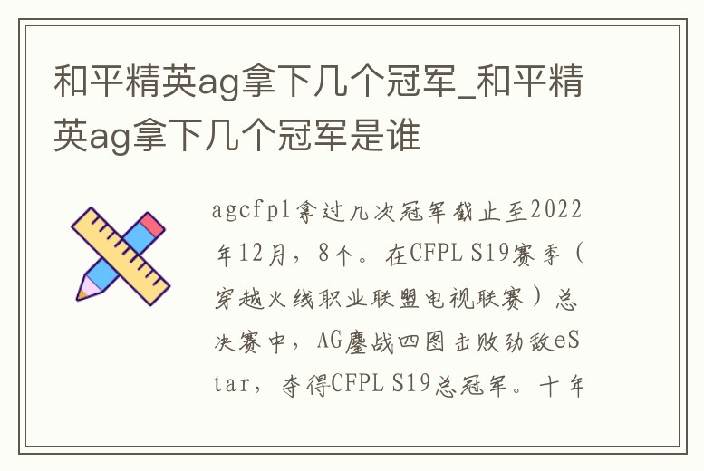 - 和平精英ag拿下幾個(gè)冠軍_和平精英ag拿下幾個(gè)冠軍是誰