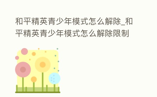 和平精英青少年模式怎么解除_和平精英青少年模式怎么解除限制