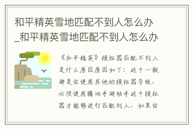 和平精英雪地匹配不到人怎么辦_和平精英雪地匹配不到人怎么辦