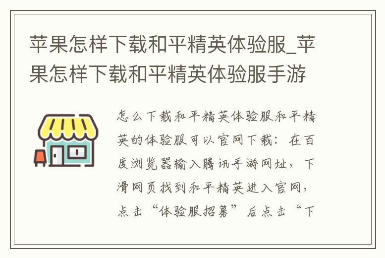 蘋果怎樣下載和平精英體驗服_蘋果怎樣下載和平精英體驗服手游