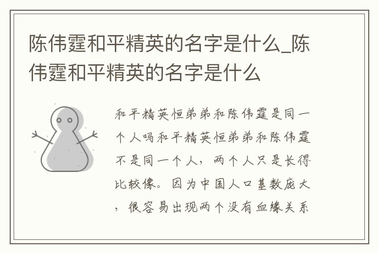 和平精英恒弟弟和陳偉霆是同一個人嗎