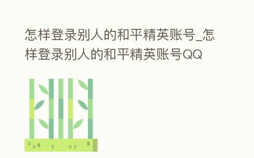 怎樣登錄別人的和平精英賬號_怎樣登錄別人的和平精英賬號QQ