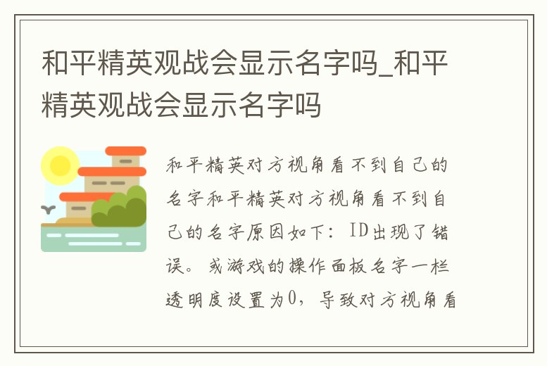 - 和平精英觀戰(zhàn)會顯示名字嗎_和平精英觀戰(zhàn)會顯示名字嗎