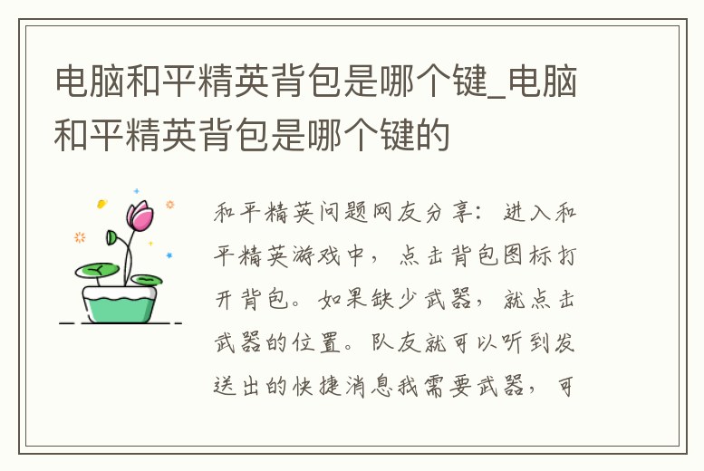 電腦和平精英背包是哪個鍵_電腦和平精英背包是哪個鍵的
