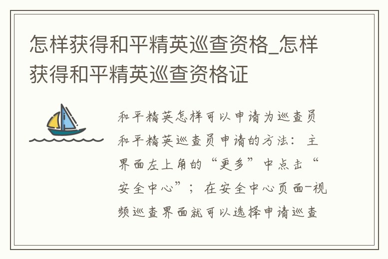 怎樣獲得和平精英巡查資格_怎樣獲得和平精英巡查資格證