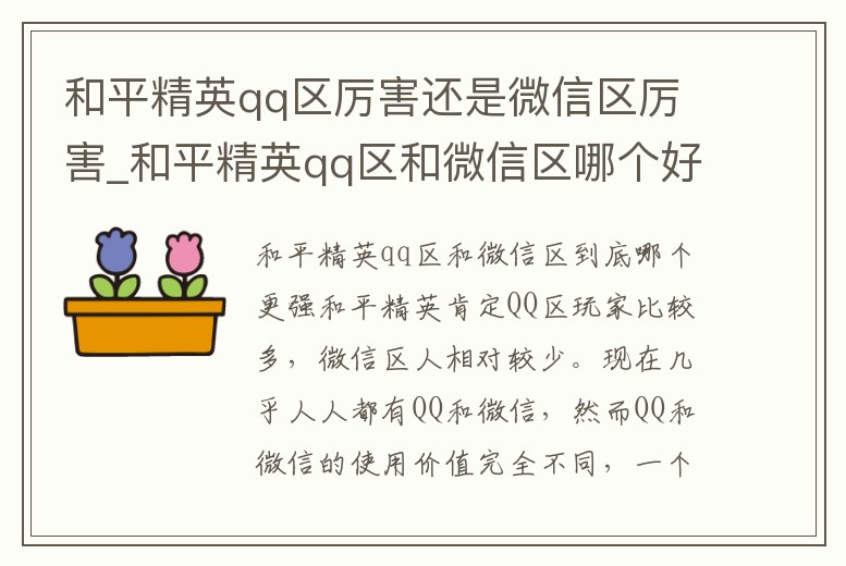 和平精英qq區(qū)厲害還是微信區(qū)厲害_和平精英qq區(qū)和微信區(qū)哪個好玩