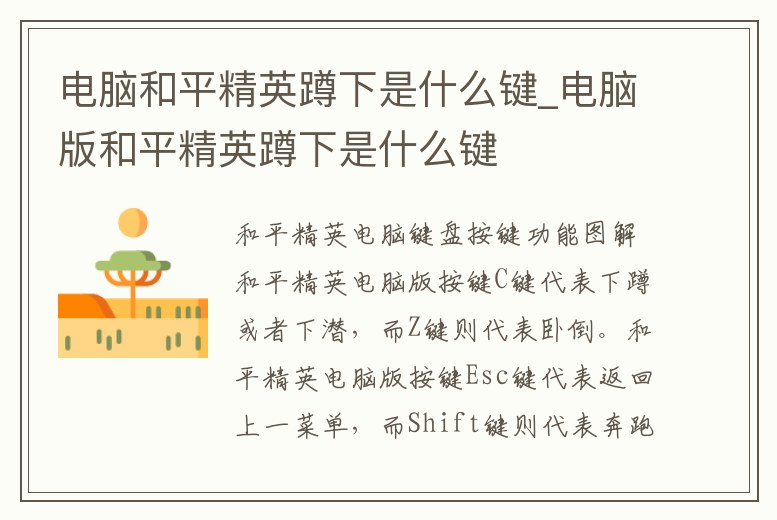 電腦和平精英蹲下是什么鍵_電腦版和平精英蹲下是什么鍵