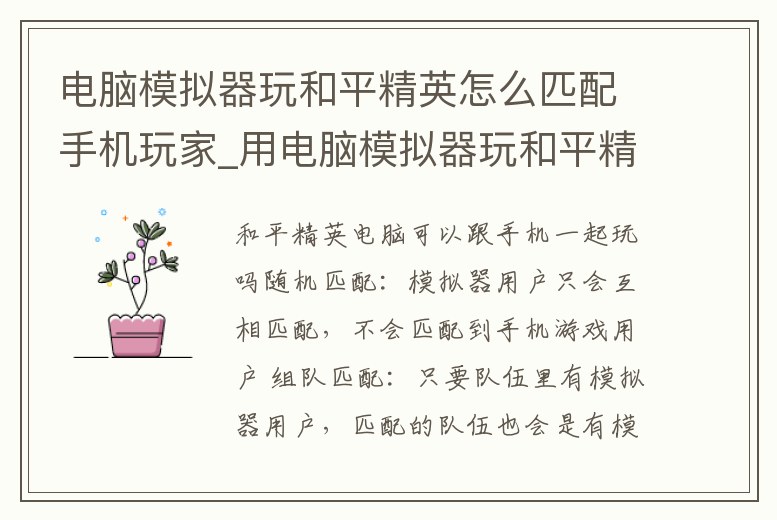 - 電腦模擬器玩和平精英怎么匹配手機(jī)玩家_用電腦模擬器玩和平精英怎么匹配手機(jī)玩家