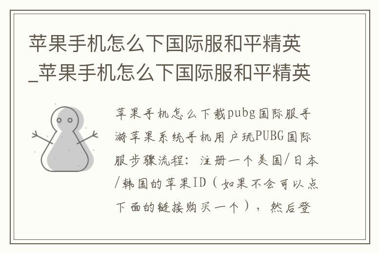 蘋果手機怎么下國際服和平精英_蘋果手機怎么下國際服和平精英手游