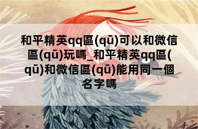 - 和平精英qq區(qū)可以和微信區(qū)玩嗎_和平精英qq區(qū)和微信區(qū)能用同一個名字嗎