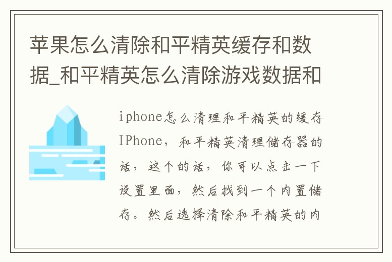 - 蘋(píng)果怎么清除和平精英緩存和數(shù)據(jù)_和平精英怎么清除游戲數(shù)據(jù)和緩存蘋(píng)果手機(jī)