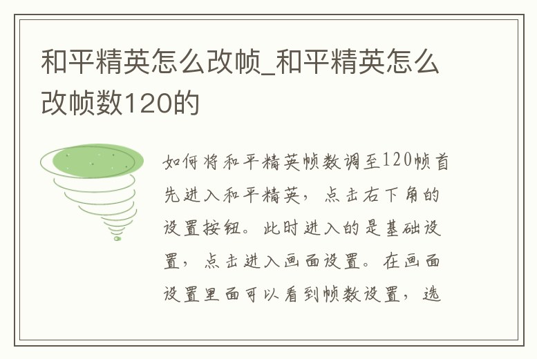 - 和平精英怎么改幀_和平精英怎么改幀數120的