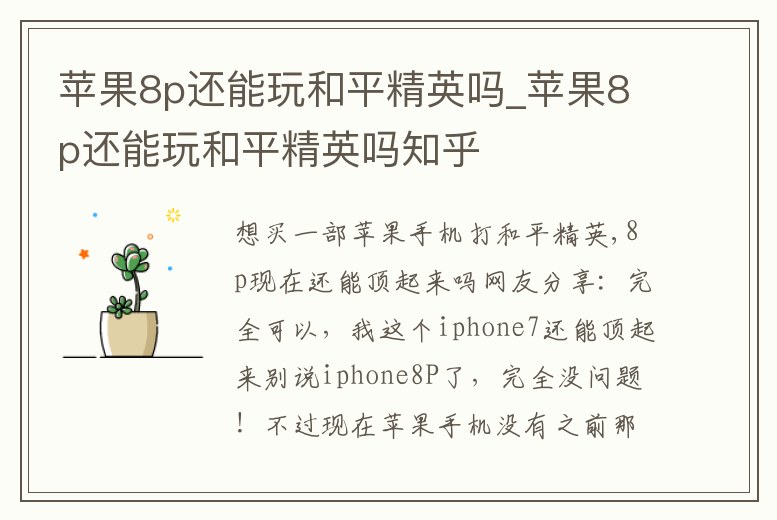 蘋果8p還能玩和平精英嗎_蘋果8p還能玩和平精英嗎知乎