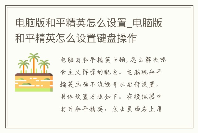電腦版和平精英怎么設置_電腦版和平精英怎么設置鍵盤操作