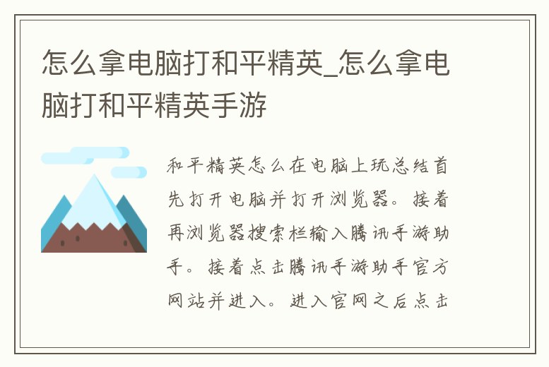 怎么拿電腦打和平精英_怎么拿電腦打和平精英手游