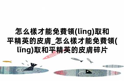 怎么樣才能免費領(lǐng)取和平精英的皮膚_怎么樣才能免費領(lǐng)取和平精英的皮膚碎片