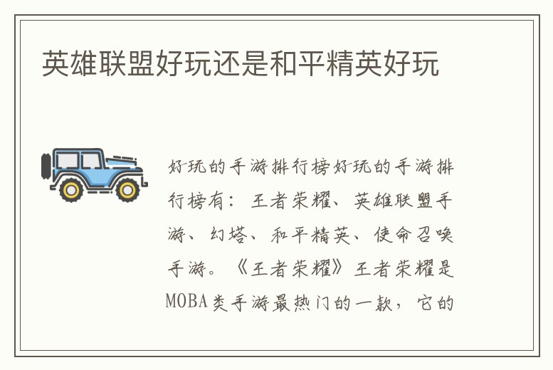 超好玩的游戲有:《王者榮耀》、《英雄聯(lián)盟手游》、《原神》、《夢幻西游》、《和平精英》。《王者榮耀》《王者榮耀》中的玩法以競技對戰(zhàn)為主,玩家之間進(jìn)行1V3V5V5等多種方式的PVP對戰(zhàn),在滿足條件后可以參加游戲。